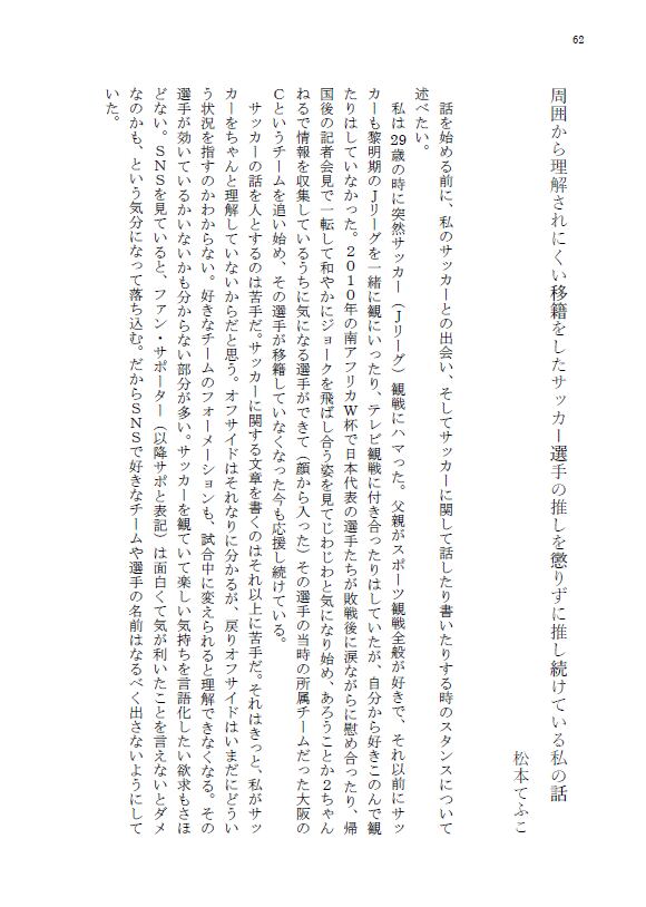 「周囲から理解されにくい移籍をしたサッカー選手の推しを懲りずに推し続けている私の話」松本てふこ(エッセイ)