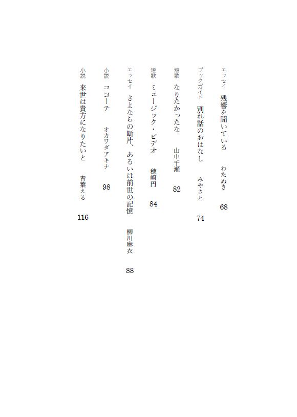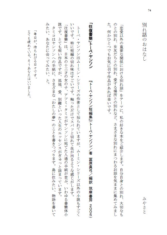 小説、詩、エッセイ、手紙、ブックガイドetc etc……さまざまに語られる、恋愛”以外”の別れ話をあつめたアンソロジーです。