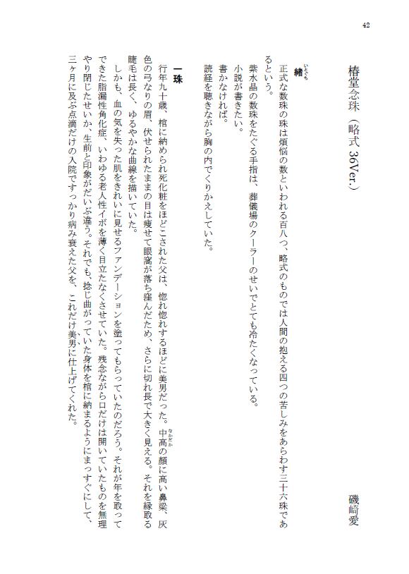 「椿堂念珠(略式36Ver.)」磯崎愛(小説)